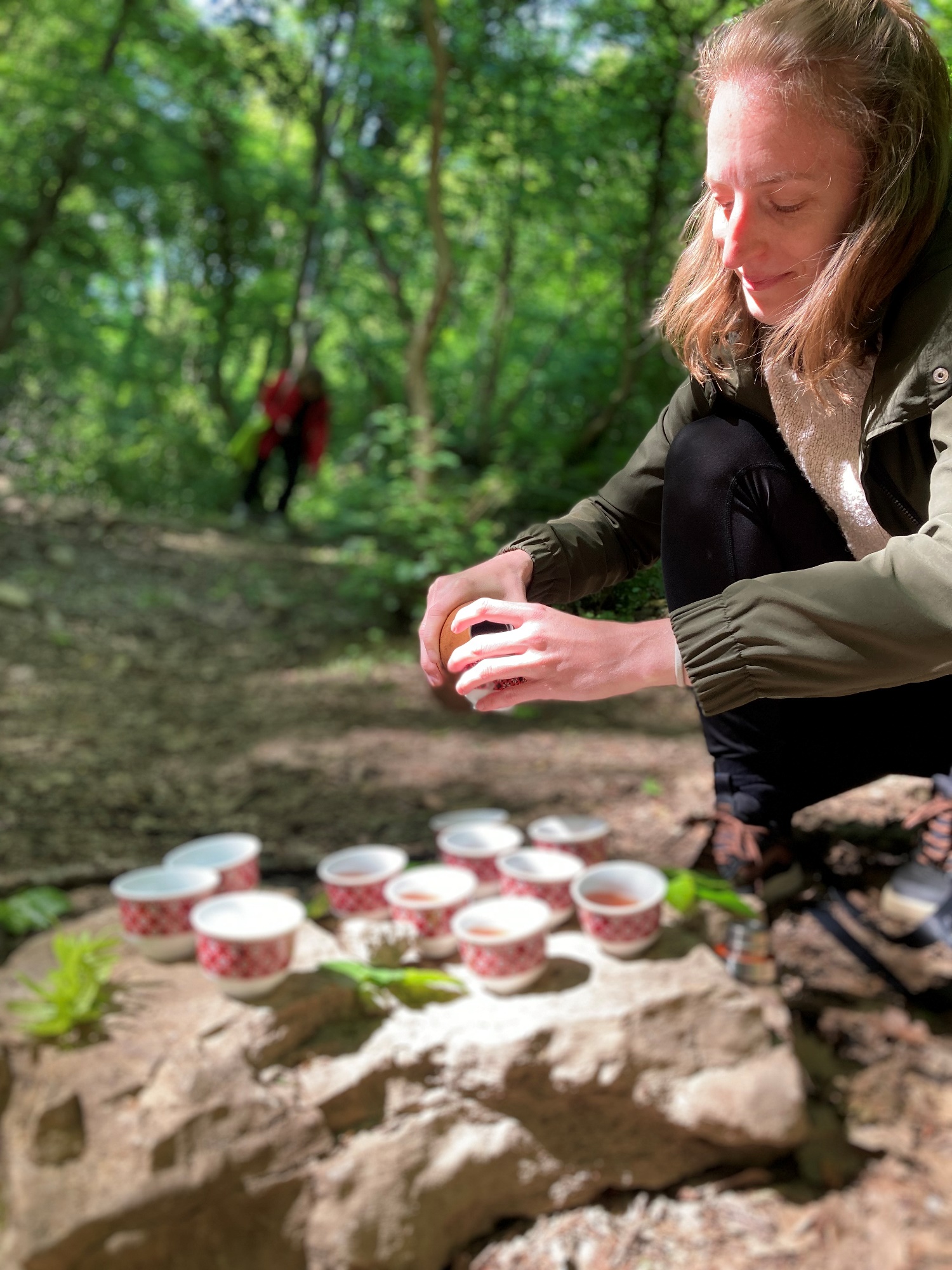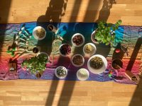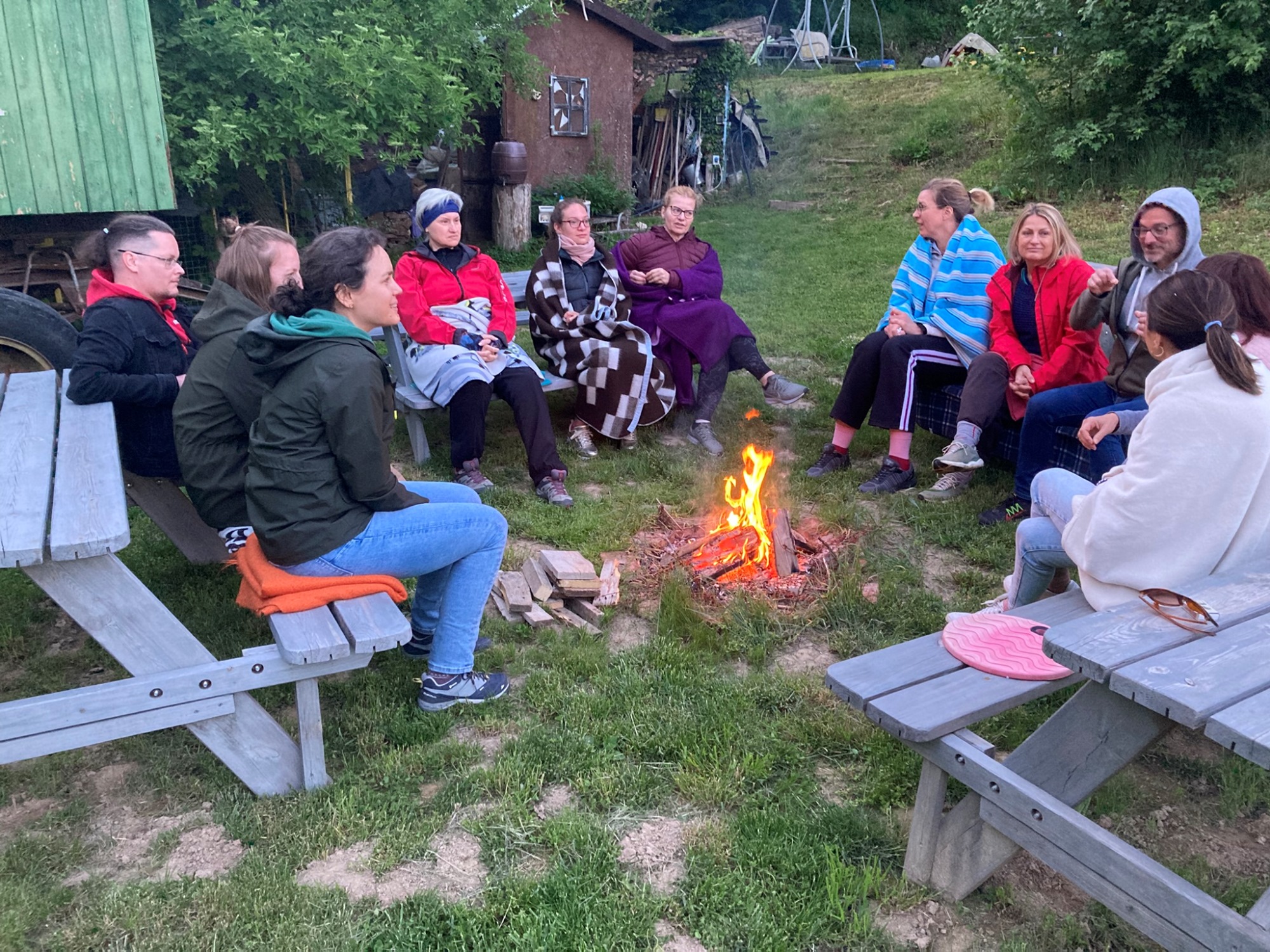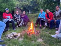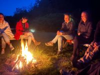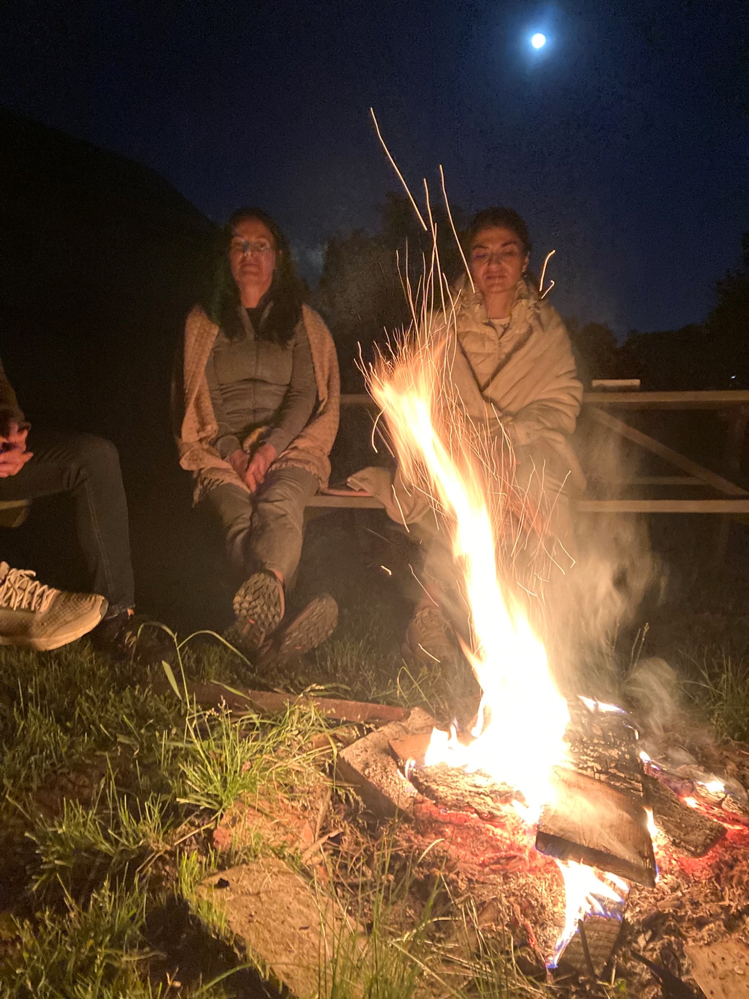 Szóval volt minden, ami megszokott: jóga, pránajáma, őrült finom ételek Csilla fazékjaiból, közösségi mindenmentes süti sütés, szauna, csobbanás a patakban, társas. Sőt különleges érzékszervi utazást is tettünk: illatoztunk, kóstoltunk, tapintottunk, figyeltük a hangokat. És idén végre kipróbáltuk milyen együtt tűzkörül ülni, és Füli kutya zászlós farkincáját terelgetni nehogy lángra kapjon a boldogság hevében.