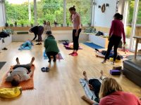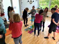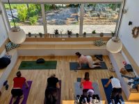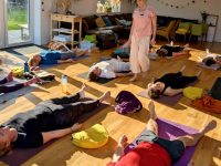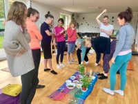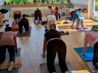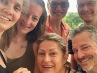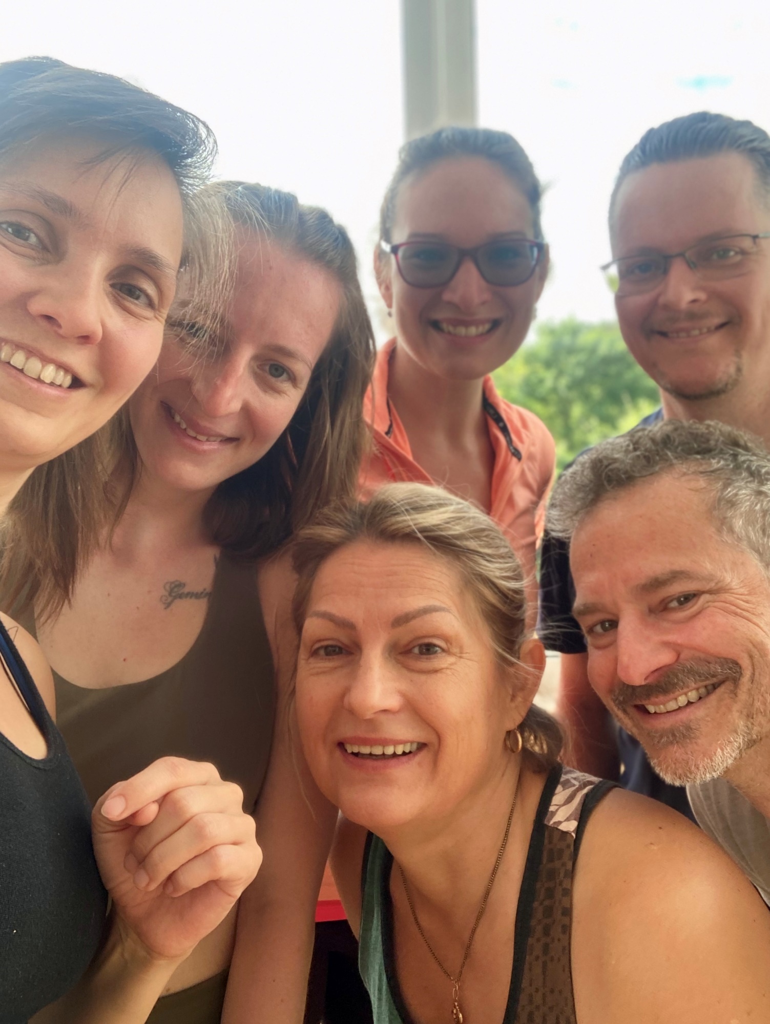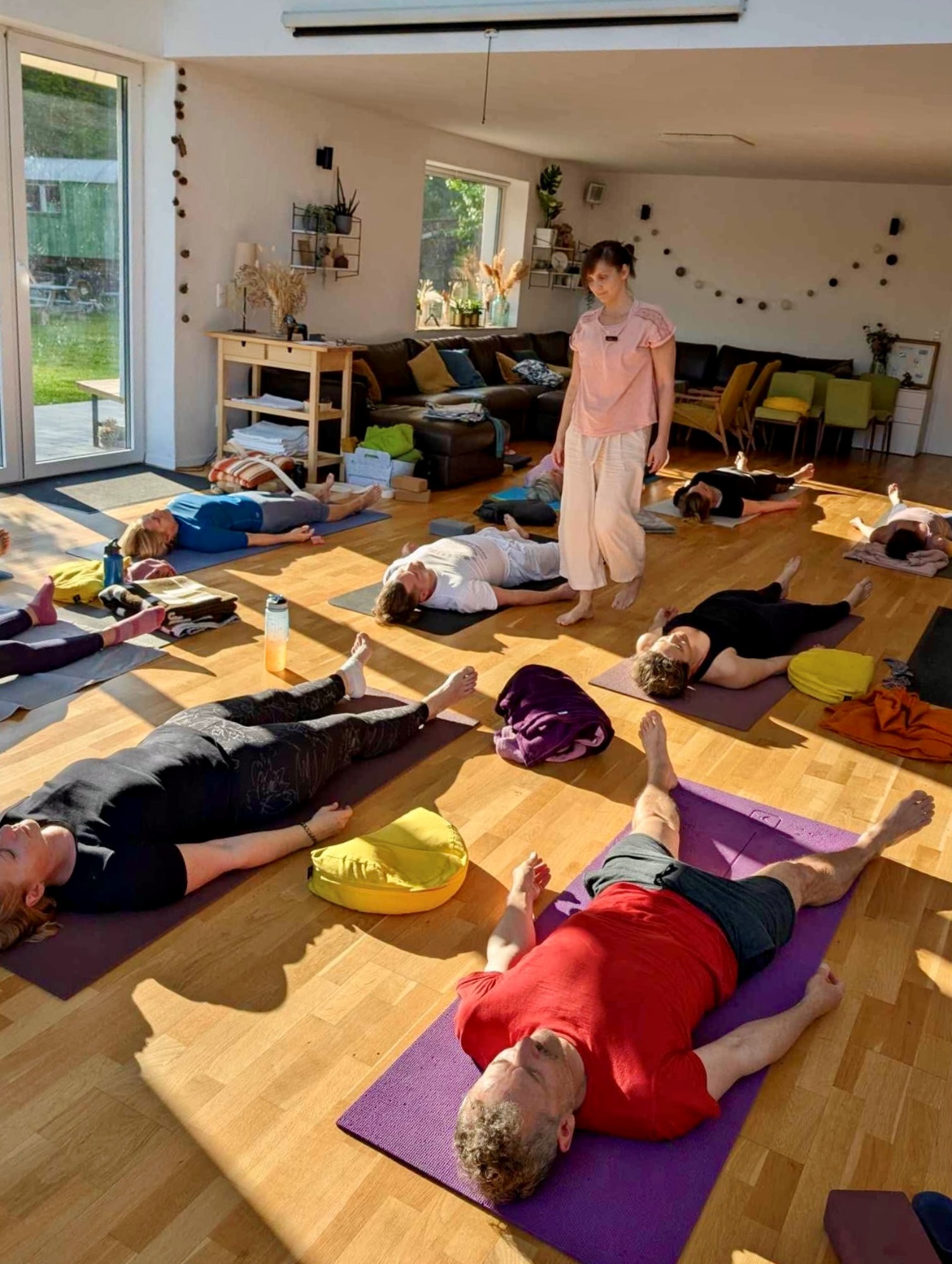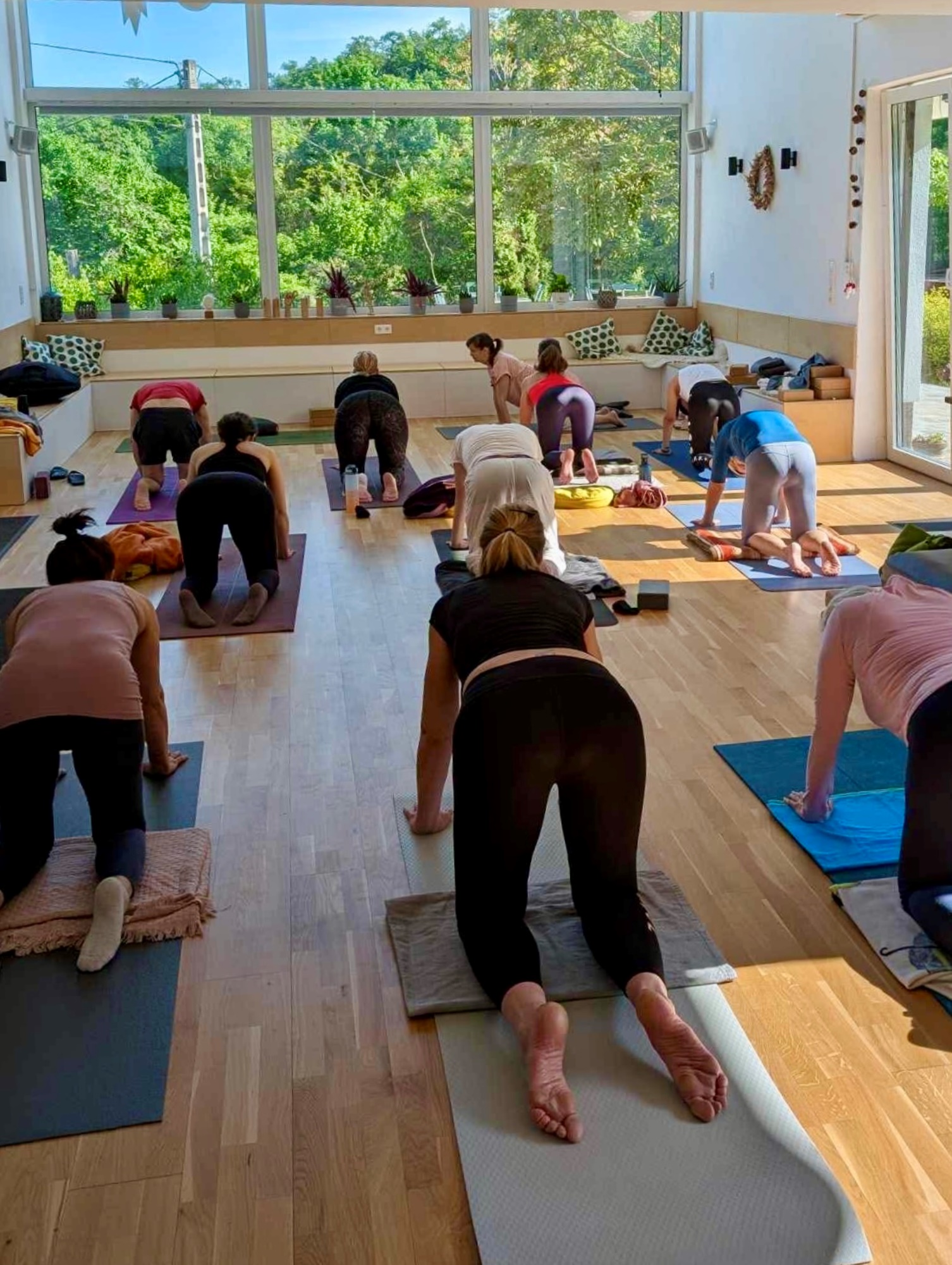 A 2025-ös jelmondatom: Mindent ugyanúgy, ahogy eddig, csak lágyabban. Ezzel a célkitűzéssel indultunk útnak ismét Tamival. A lágyság jegyében – illetve az öt még számomra ismeretlen gyakorló miatt is – nem voltak kész óratervek. Mégis minden áramlott: a derű, az öngondoskodás, a 108 napüdvözlet, a trataka krya és az olykor lágy, máskor a nagyon is határokat feszegető hatha jóga. De idén nem csak hatha volt, hanem helyet kapott a flow is. Tami nem csak az erdőben füröztetett meg bennünket, de órát is tartott. Így tudtunk különbséget tenni a hatha a és a flow között. És így kerültem én is egy új szerepben, hogy a régi és új jógásokkal most én is gyakorlóként lehettem jelen. Felemelő élmény volt.
